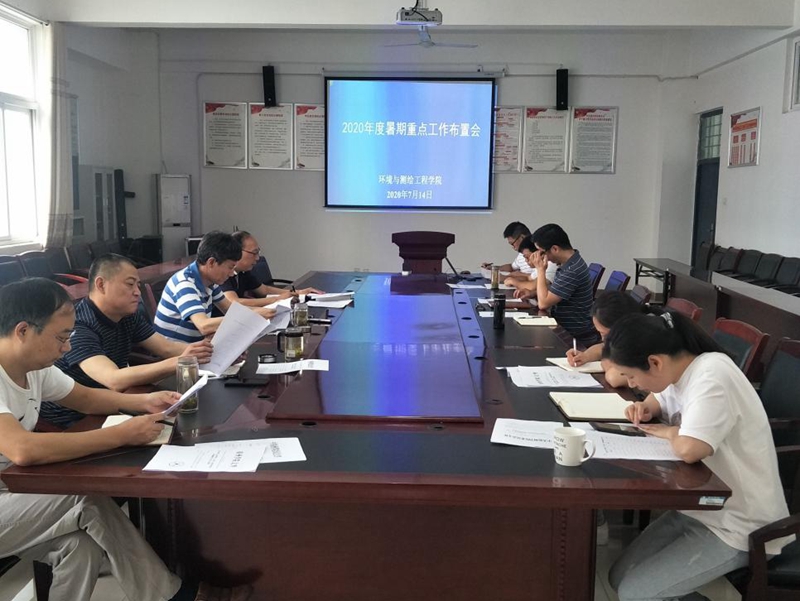 2020年7月14日上午,环测学院在工科楼A315召开暑期重点工作布置会,学院党政领导、科级干部和教研室主任参加会议。会议由付金沐院长主持。