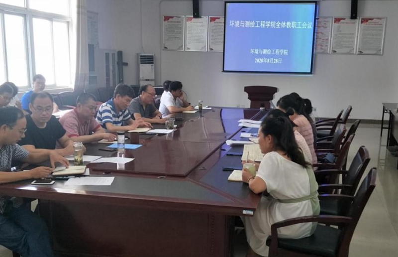 2020年8月28日上午,环测学院在工科楼A315召开2020年秋季学期开学工作会议,会议由付金沐院长主持,学院全体教职工参加会议。