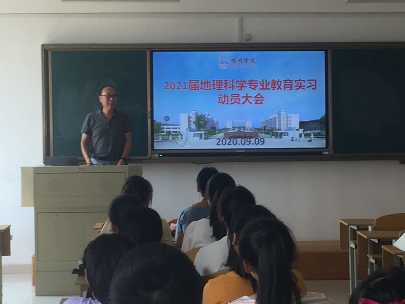2020年9月9日下午,环测学院于实习实训楼A楼501教室召开了2021届地理科学专业教育实习动员会。出席大会的领导和老师有:院长付金沐教授、教学科研秘书徐国伟副教授、地理与环境教研室副主任孙朋博士、专业教师苏海民副教授,以及2017级地理科学专业68名实习生,大会由孙朋主持。
