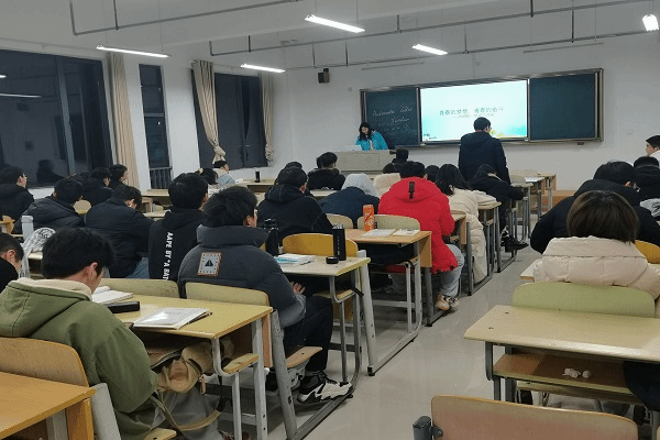 团支书张文静同学首先简要介绍了“青春的梦想,青春的奋斗”的意义,未来的五年和十五年,对于新时代青年而言,是成长成才的重要时期;对于新时代中国而言,是创造复兴伟业的关键一程。青春梦想与强国梦想,从未像今天这样紧紧相连;人的全面发展与党和国家的全面发展,从未像今天这样深深相融。奋斗的青春,奋斗的中国;青年怎样,中国就将怎样。随后,张文静同学又带领同学们一起观看了电影《老师好》 ,电影不仅艺术地展现了属于那个年代的“真”与“情”,更让很多的人回想起自己的青春。一支粉笔两袖清风三尺讲台谱写生命的华章,四季耕耘无微不至留名青史造就中华辉煌,这便是这部电影所传达的中心思想。