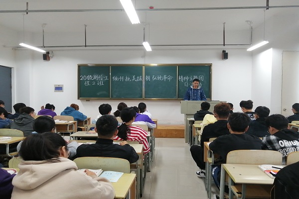 2020年11月19日, 20测绘工程2班在实训楼教室开展了“缅怀抗美援朝先烈,弘扬抗美援朝精神”主题团日活动。旨在通过该活动让同学们致敬抗美援朝战争及英雄,学习抗美援朝精神,争做时代新人。我们要铭记抗美援朝战争的艰辛历程和伟大胜利,弘扬伟大抗美援朝精神,雄赳赳,气昂昂,向着全面建设社会主义现代化国家新征程,向着实现中华民族伟大复兴的中国梦继续奋勇前进。
