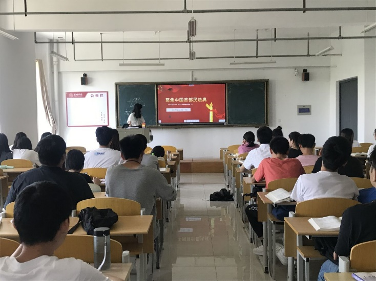刘俊通过引导同学们观看电子版《中华人民共和国民法典》及展现PPT内容,让同学们了解《中华人民共和国民法典》,并通过一些民事纠纷、财产纠纷案例,让同学们更加直观的感受《中华人民共和国民法典》在纠纷中起到的作用,从而能够充分的了解到《中华人民共和国民法典》存在的意义。