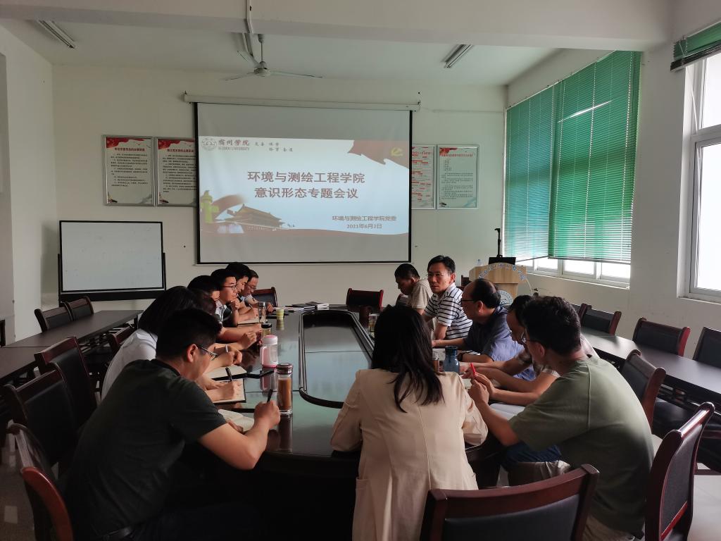 2021年6月2日,环境与测绘工程学院在工科楼A314召开意识形态专题会议。环境与测绘工程学院党委书记袁新田、院长付金沐、副书记胡冰及学院中心组成员、科级干部、各党支部书记、全体辅导员参会,会议由袁新田主持。