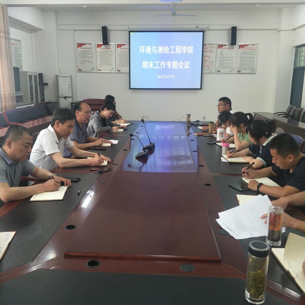 2021年6月9日下午,环测学院在工科楼A315召开期末工作专题会议,学院党政领导、科级以上干部、教研室主任、教务员和全体辅导员参加会议。会议由付金沐院长主持。