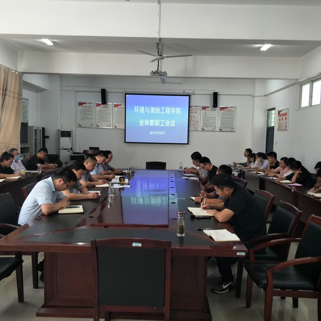 2021年9月8日下午3:10,环测学院在工科楼A315召开全体教职工会议,学院全体教职工参加了会议。会议由环测学院院长张海洋主持。