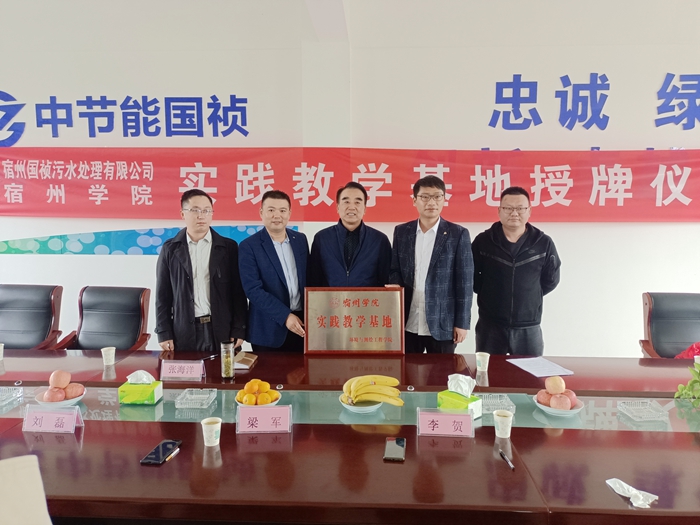 在国祯污水处理有限公司,宿州市循环经济示范园管委会副主任梁军介绍了宿州市“十四五”规划的环境保护目标,强调了环保工作在未来一段时间工作中的重要位置。国祯污水处理有限公司经理李贺介绍了公司生产运营、规范管理、人才培养等情况。在签署合作协议和“宿州学院实践教学基地”揭牌仪式结束后。双方就未来合作的方向、目标、模式等内容进行了深入探讨。