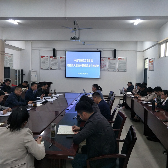 为深入学习贯彻习近平总书记关于教育的重要论述和教师队伍建设的重要指示精神,贯彻落实省委教育工委、省教育厅师德师风专题教育通知和会议精神,进一步推进师德专题教育活动,2021年10月13日下午,环测学院在工科楼A315召开师德师风建设专题整治工作推进会,学院党委副书记(临时负责)胡冰、党委副书记院长张海洋、副书记李建新、副院长徐国伟、副院长李琦及全体教职工参加会议,会议张海洋主持。