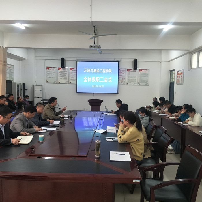 2021年11月3日下午,环测学院在工科楼A315召开全体教职工会议,学院党委副书记(临时负责)胡冰、党委副书记院长张海洋、副书记李建新、副院长徐国伟、副院长李琦及全体教职工参加会议,会议由张海洋主持。