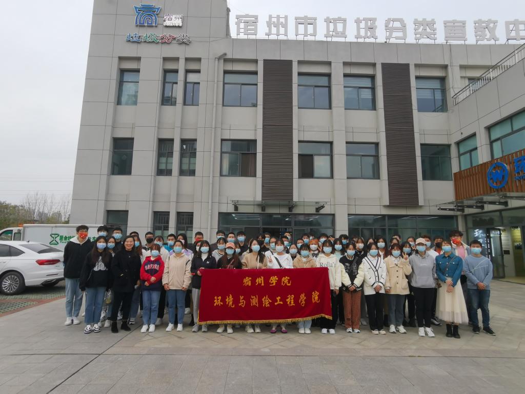 2021年11月15下午,环境与测绘工程学院2019级环境工程班级学生前往宿州市垃圾分类宣教中心开展专业实习暨劳动教育,专业课教师张勇、符义稳博士及辅导员陈影带队参加。