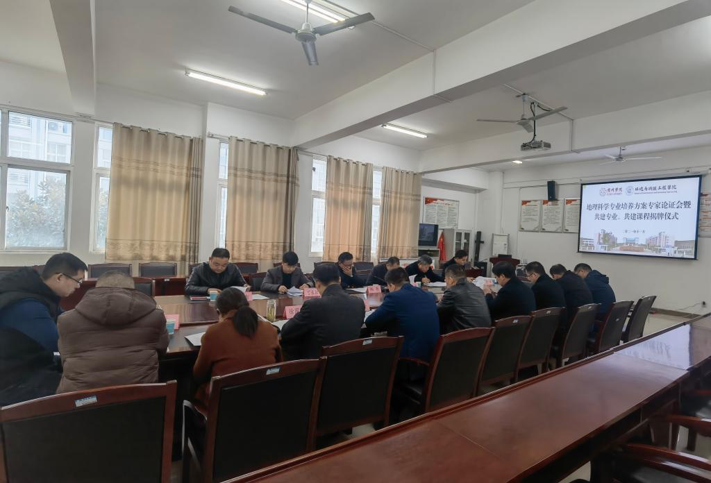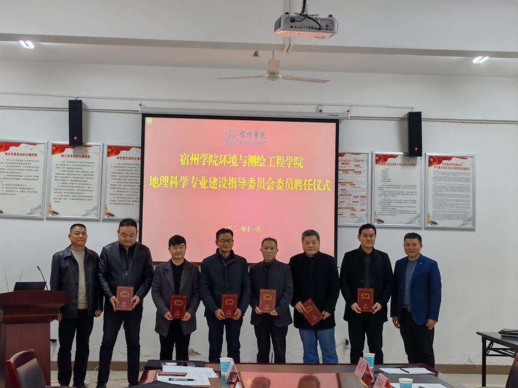 11月28日下午,环境与测绘工程学院在工科楼A315会议室举行“地理科学专业培养方案专家论证会暨共建专业、共建课程揭牌仪式”。会议邀请了安徽省农业气象首席服务专家李德副研究员,宿州学院附属实验中学校长杨哲副研究员,宿州市教体局教科所高级教师丁长征,宿城一中高级教师高勇,宿州学院附属实验中学党总支宣传委员、高级教师叶伟智,地理科学专业优秀毕业生、宿城第一初级中学一级教师付伟等作为专家组成员。环境与测绘工程学院党委副书记、院长张海洋教授,党委副书记、纪委书记李建新,教学副院长徐国伟副教授,科研副院长李琦副教授,教学秘书孙朋,及各教研室主任和地理专业全体教师参加了会议。环境与测绘工程学院党委副书记(临时负责)胡冰主持了会议。