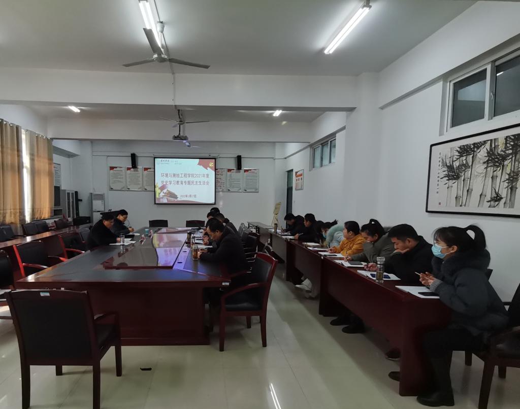 2022年1月17日上午,环境与测绘工程学院召开“党史学习教育”专题民主生活会。学校党委副书记蔡之让、校纪委副书记张劲松到会指导。学院党委副书记(临时负责)胡冰、党委副书记、院长张海洋、党委副书记、纪委书记李建新参加会议,院中层非党员领导干部、党委委员、各支部书记、科级干部列席了民主生活会,会议由胡冰主持。