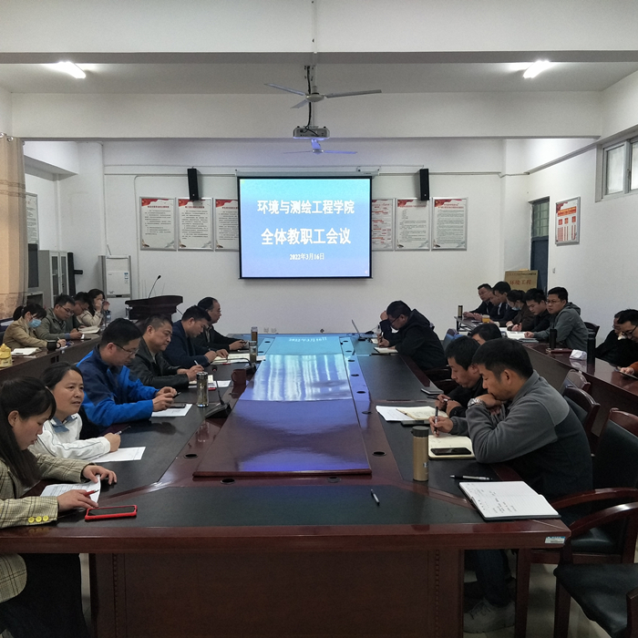 2022年3月16日下午,环测学院在工科楼A315召开全体教职工会议,学院党委副书记(临时负责)胡冰、党委副书记、院长张海洋、党委副书记、纪委书记李建新、教学副院长徐国伟、科研副院长李琦及全体教职工参加会议,会议由张海洋主持。