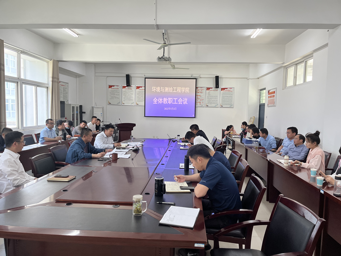 5月5日下午,环测学院于工科楼A315召开全体教职工会议,学院党委副书记(临时负责)胡冰、党委副书记、院长张海洋、教学副院长徐国伟、科研副院长李琦及全体教职工参加会议,会议由张海洋主持。