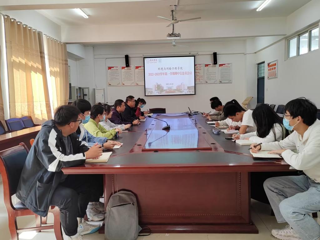 为强化学院教学质量保障体系,搭建师生沟通平台,保障“抓学风、抓教风”举措有效落实,促进专业人才培养质量的稳步提升,按照学校和学院相关文件精神及工作安排,环境与测绘工程学院与10月18日在工A315会议室举行了2021-2022学年第二学期期中教学信息员会议,教学副院长徐国伟、教学督导组组长孙朋、院校两级督导组成员、教研室主任以及全院在校所有信息员参加会议。