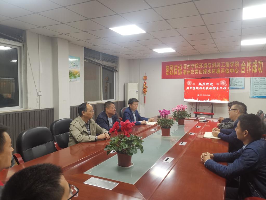 张海洋对宿州市青山绿水环境评估中心领导的热情接待表示感谢,介绍了环测学院教学科研和实验室建设方面的情况,提出了学院在实践教学方面的需求。双方就校企合作项目进行了深入探讨,表示将在课题攻关、人才招聘、实习实训教学等多方面展开合作,构建校企优势互补、高效融合的技术创新与人才培养体系。