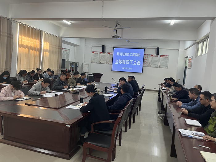 11月2日下午,环测学院于工科楼A315召开全体教职工会议,学院党委副书记(临时负责)胡冰,党委副书记、院长张海洋,党委副书记、纪委书记李建新,教学副院长徐国伟及全体教职工参加会议,会议由张海洋主持。
