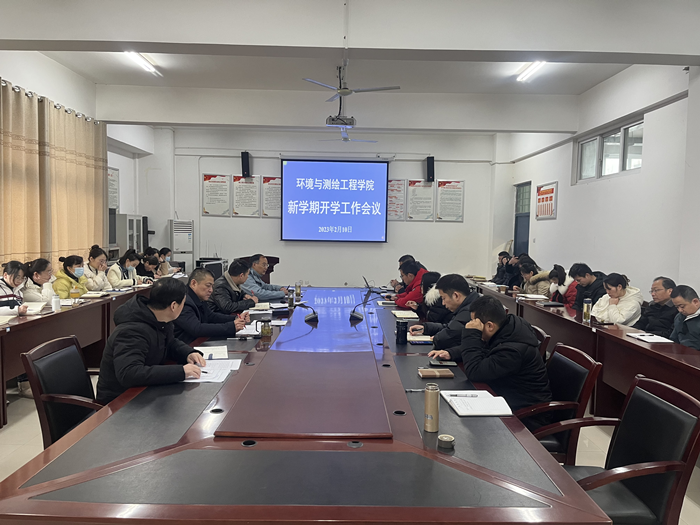 2023年2月10日上午,环测学院在工科楼A315召开2023年春季新学期开学工作会议,学院党委书记胡冰,党委副书记、院长张海洋,党委副书记、纪委书记李建新,教学副院长徐国伟及全体教职工参加会议,会议由张海洋主持。