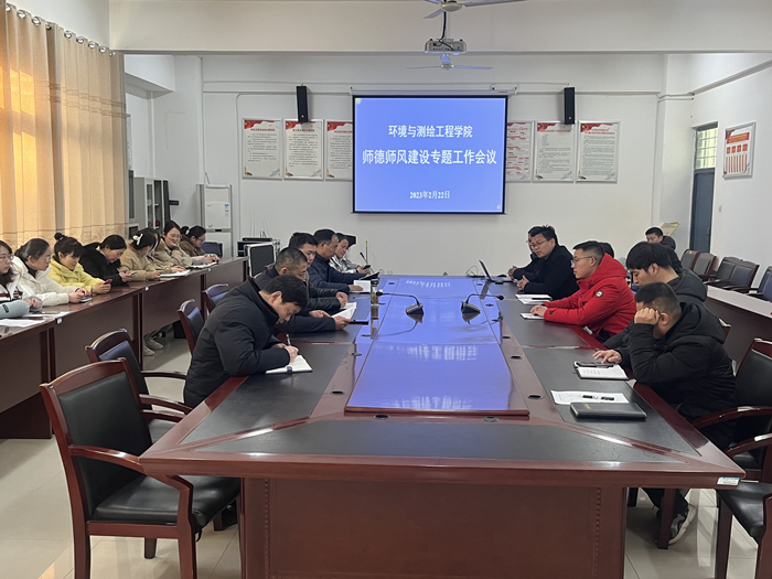 2月22日下午,环测学院在工科楼A315召开师德师风建设专题工作会议,学院党委书记胡冰,党委副书记、院长张海洋,党委副书记、纪委书记李建新,副院长徐国伟及全体教职工参加会议,会议由胡冰主持。