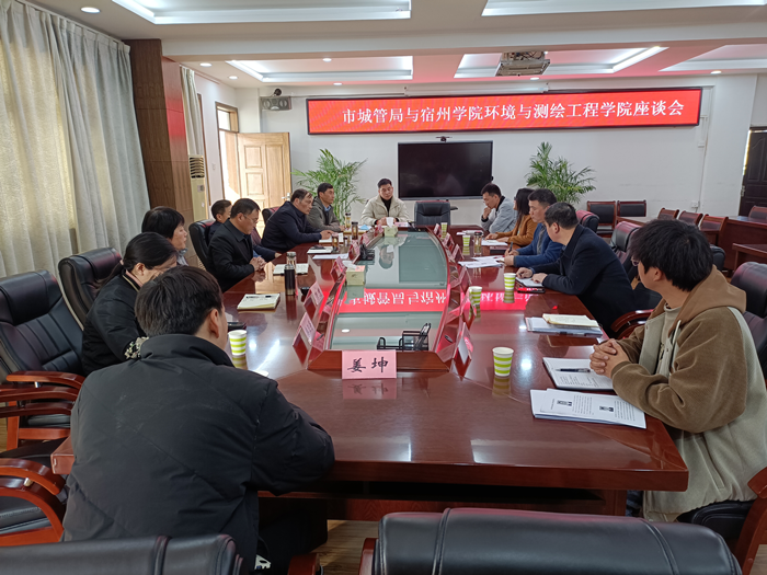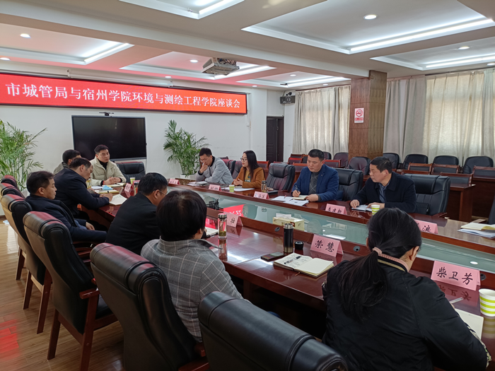 为加快推进“资源与环境”高峰培育学科建设工作,2023年3月2日下午,环境与测绘工程学院和宿州市城市管理局在城管局5楼会议室召开高峰培育学科建设双方合作事宜座谈会。宿州市城市管理局党组书记、局长庞壮,副局长王荣胜,市环境卫生管理处主任荣慧,市容科负责人丁敬海,节水办主任程训以及人事科、垃圾分类办主要负责人出席会议。宿州学院环境与测绘工程学院党委副书记、院长张海洋,党委副书记、纪委书记李建新,地理与环境教研室主任刘娜以及环境工程专业相关博士参加双方合作座谈会。