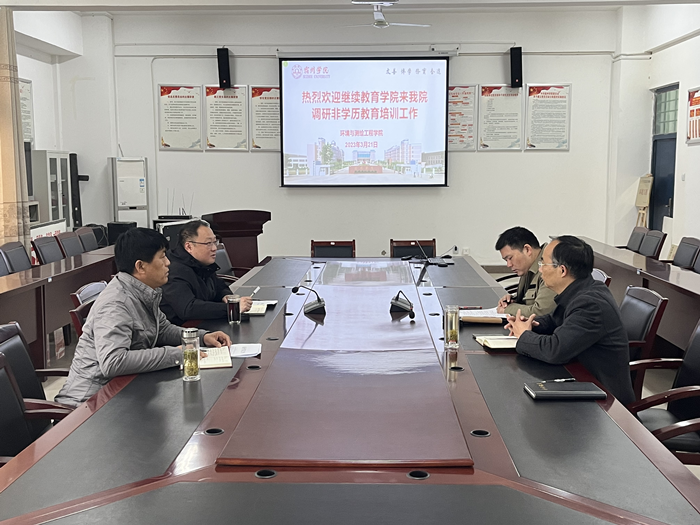 2023年3月21日上午,继续教育学院院长甘守飞、培训科科长王国成一行来我院开展非学历教育培训工作调研活动,学院院长张海洋、副院长徐国伟及学院相关工作联系人出席会议,会议由张海洋主持。