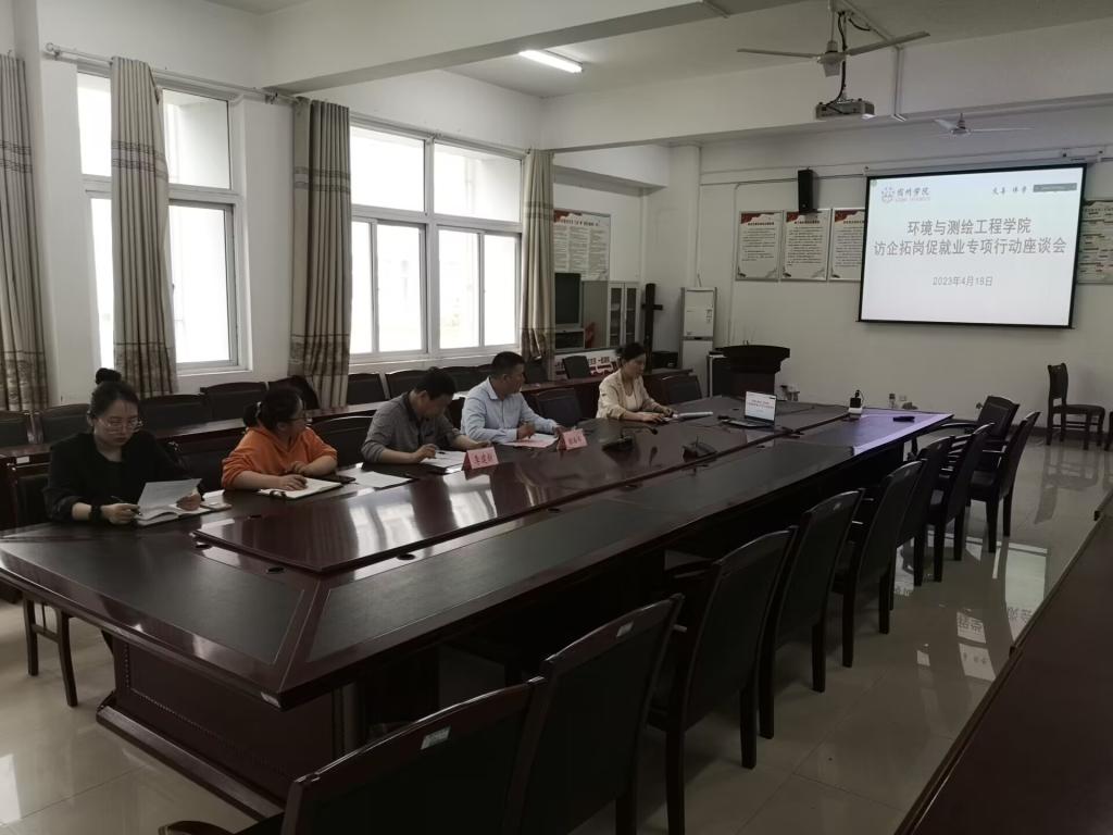 为进一步做好2023届毕业生就业岗位拓展与服务工作,4月18日下午,环境与测绘工程学院通过腾讯会议方式召开“访企拓岗促就业”专项行动座谈会。环境与测绘工程学院党委副书记、院长张海洋,党委副书记、纪委书记李建新,团委副书记杨文,江苏众信工程勘测有限公司董事长周红兵、副总经理崔碧、技术负责人张百红、行政主管胡雅惠参加座谈会。会议由李建新主持。