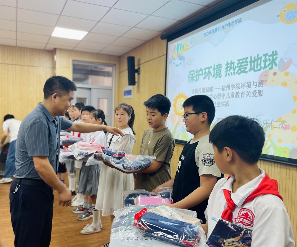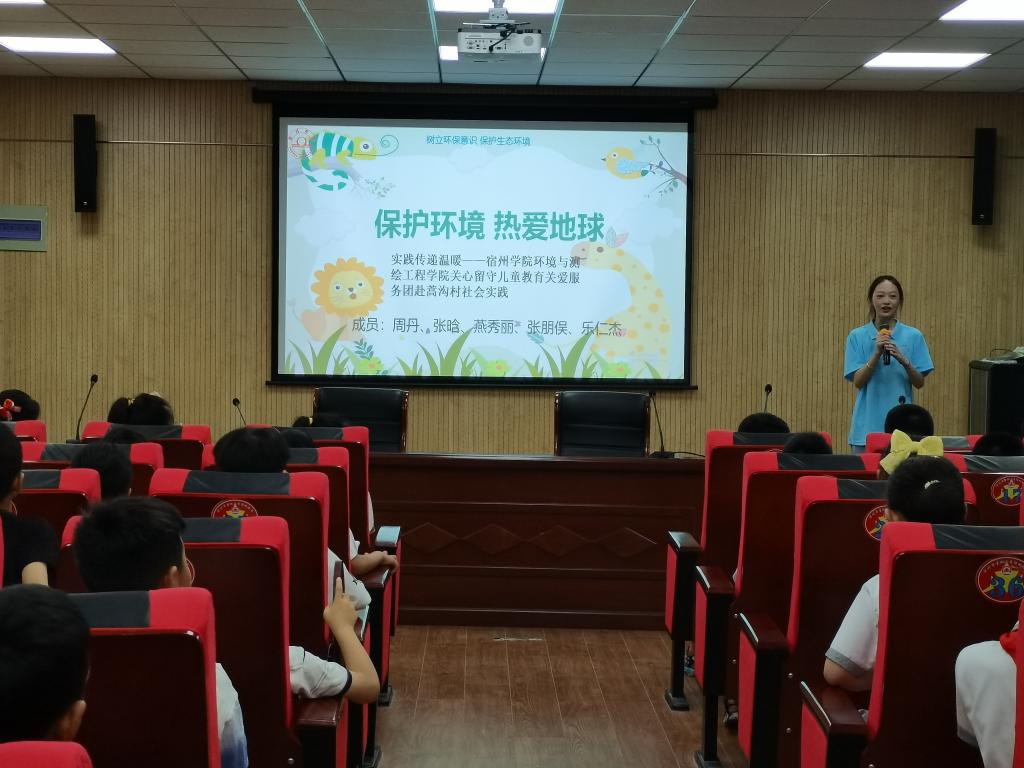 6月30日,我们团队随着朝阳,伴着清风走进了美丽的宿州市埇桥区雪峰小学,在唐淑荣老师的带领下,秉持着尊重留守儿童的原则,给予人文关怀,在力所能及的范围内为留守儿童捐献物资,鼓励学生积极向上,关注学生心理健康发展,树立正确的价值观。服务团成员结合自身所学的专业知识,开展寓教于乐的环境保护知识讲座,帮助他们树立保护环境的意识,营造良好的学习氛围。