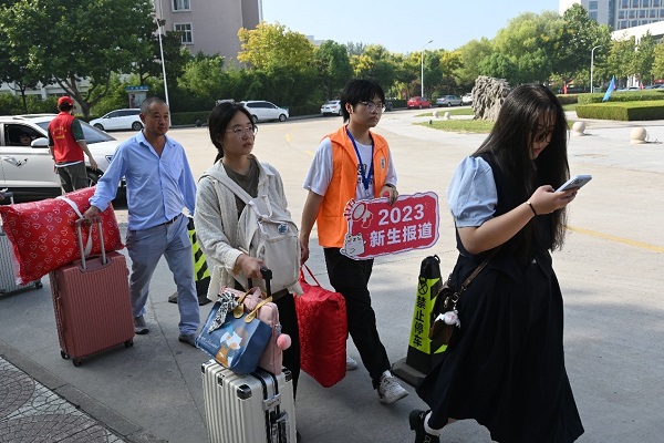 云天收夏色,木叶动秋生。在这个夏意留存但秋风渐起的9月,在学院党委书记胡冰,党委副书记、院长张海洋,党委副书记、纪委书记李建新、副院长徐国伟的指导下,环境与测绘工程学院顺利开展了2023级新生报到工作,新生班级辅导员老师及学生会成员、学生党员参加了本次迎新工作。