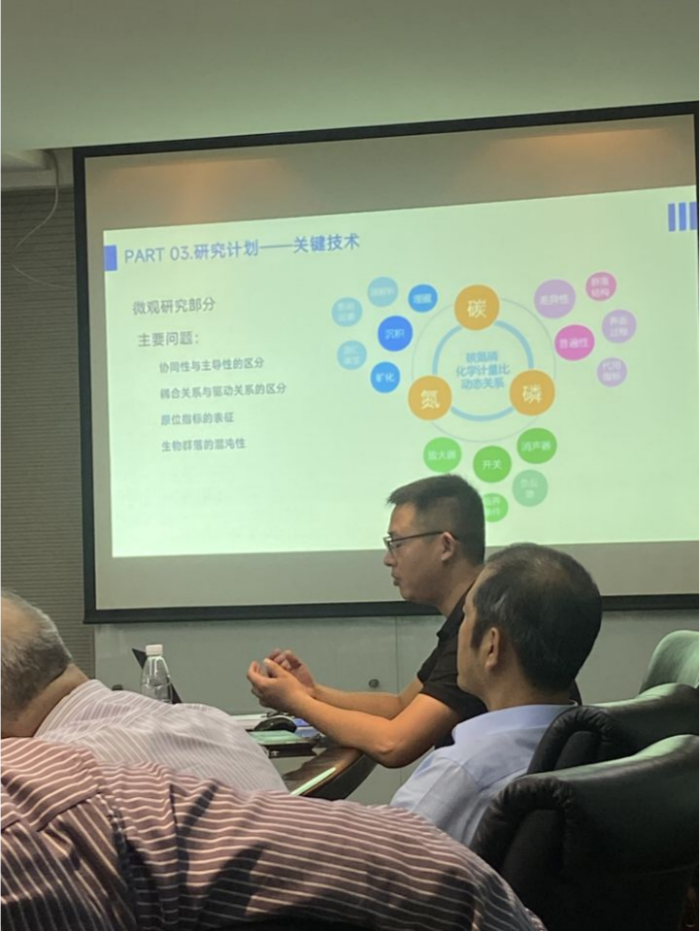 姜泉良老师从湖泊沉积物中有机碳沉积-矿化反演与未来变化研究的背景与意义、有机碳沉积的反演、有机碳矿化的模拟等方面系统阐述了自身对湖泊表层沉积物碳埋藏的观点,并得到与会专家的一致好评。