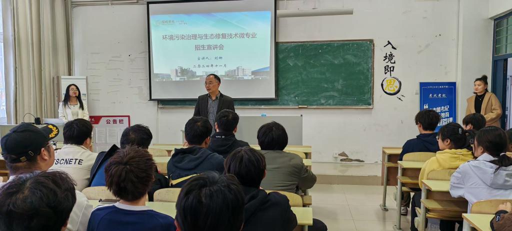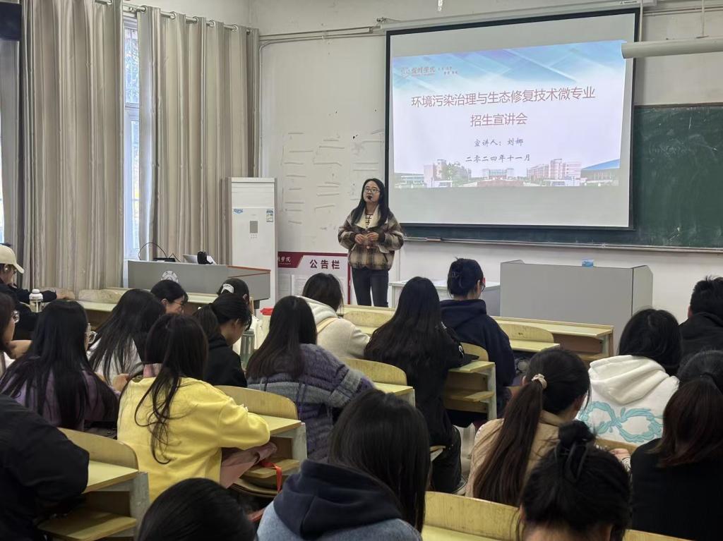 根据《宿州学院微专业建设与管理办法(试行)》(院教字〔2024〕42号)(附件1)文件精神,按照学校2024年微专业招生工作部署,为顺利推进“环境污染治理与生态修复技术”微专业招生工作,2024年11月6日和11月8日下午,环境与测绘工程学院分别开展两场微专业招生宣讲会。参会老师有教务处高莉、环测学院教学副院长徐国伟、微专业负责人刘娜,参会学生来自地理科学、遥感科学与技术、水文与水资源工程等多个本科专业。