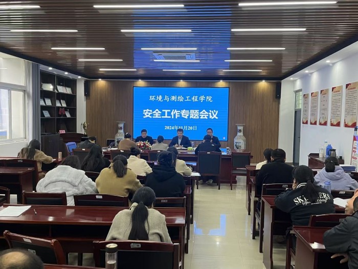 2024年11月20日下午,环测学院在工科楼A315召开全体教职工会议暨安全工作专题会议,学院党委副书记、院长张海洋,党委副书记、纪委书记李建新,副院长李琦及全体教职工参加会议,会议由张海洋主持。