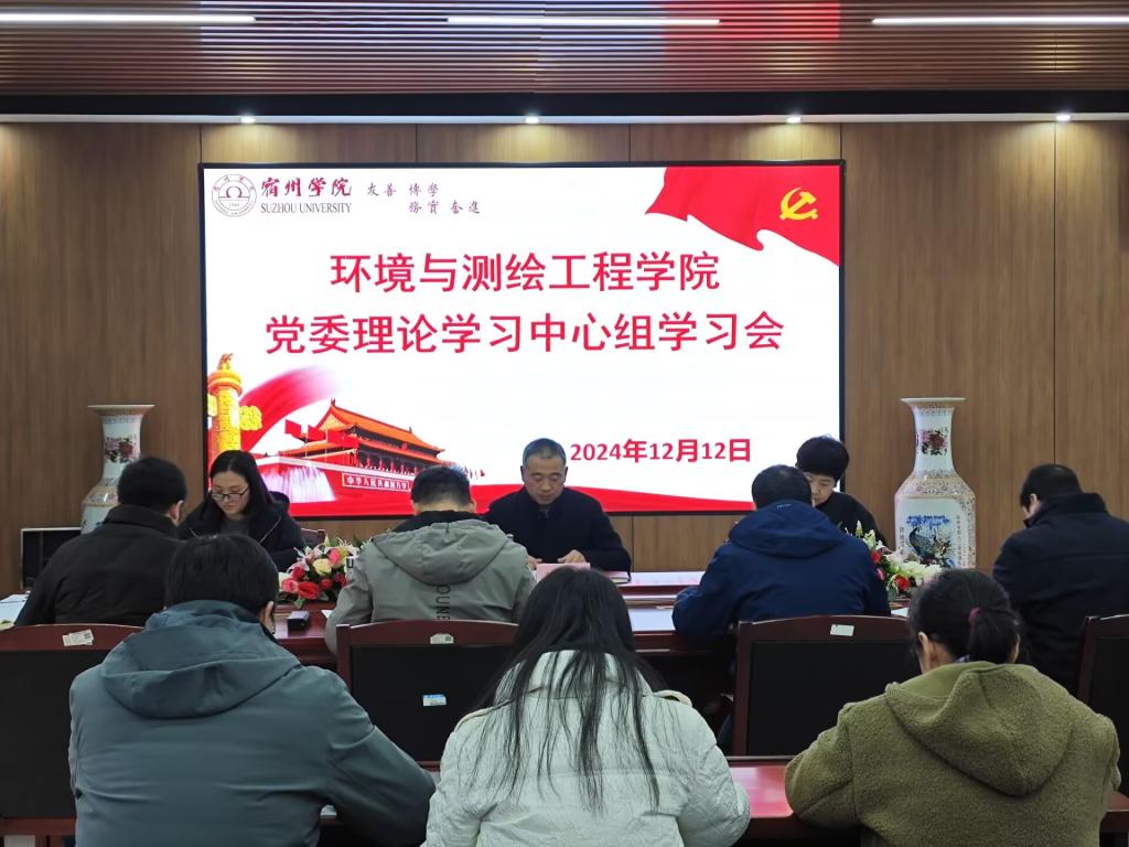 2024年12月12日,环境与测绘工程学院召开党委理论学习中心组学习会。校党委副书记、校长闵杰,党委巡察工作办公室主任李真,联络员张晓列席旁听学习会。会议由环测学院党委书记蔡若愚主持,党委理论学习中心组成员和随机抽点的党员教师参加了学习。