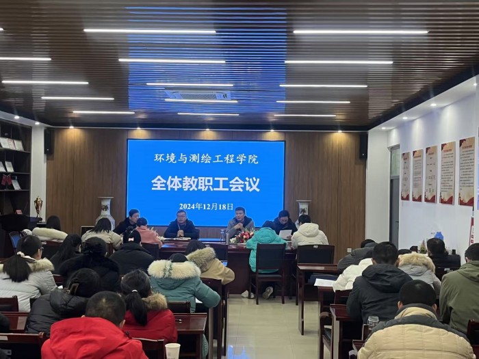 2024年12月18日下午,环测学院在工科楼A315召开全体教职工会议暨安全工作专题会议,学院党委书记蔡若愚,党委副书记、院长张海洋,党委副书记、纪委书记李建新,副院长李琦及全体教职工参加会议,会议由张海洋主持。
