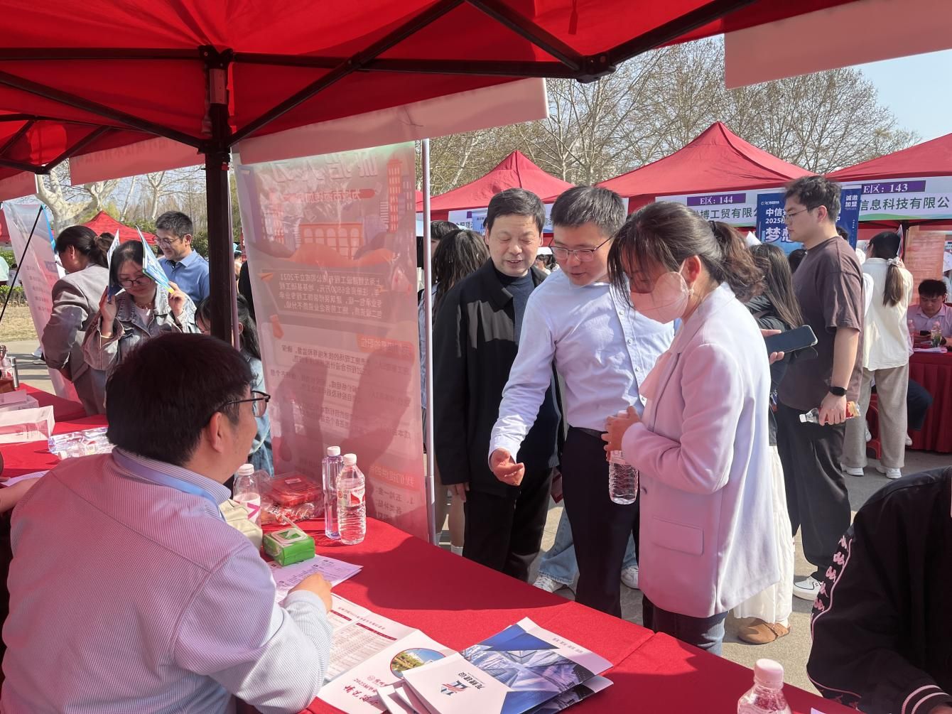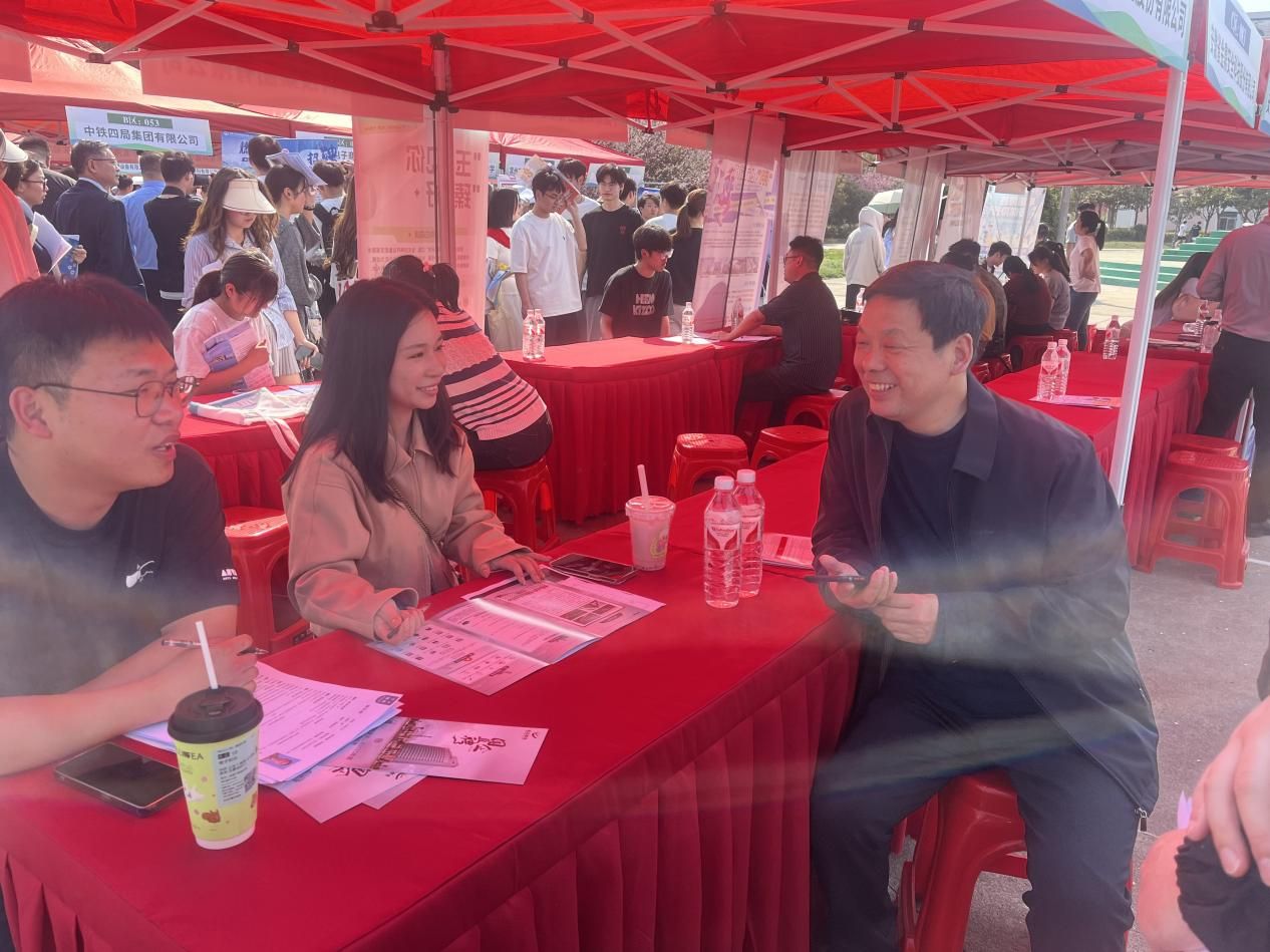 张海洋一行深入招聘会现场,同学院相关专业的招聘单位深入交流,详细了解单位的用人需求及岗位职责,积极推荐学生,指导学生投递简历、参加面试。