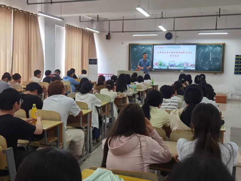 精心筹备,筑牢实习基础。为确保实习顺利开展,学院于5月16日召开实习动员会,学院副院长李琦出席并作动员讲话。他强调,野外实习是地理科学人才培养的关键环节,要求全体师生牢固树立安全意识,在实践中锤炼专业本领,同时勉励学生以“地理人精神”为指引,培养吃苦耐劳、严谨求实的科学态度。动员会上,带队教师高杨作实习安排与实习要求等事宜布置。此次实习由地理科学专业负责人孙朋担任领队,副院长徐国伟、高杨和侯梅等专业教师全程指导。