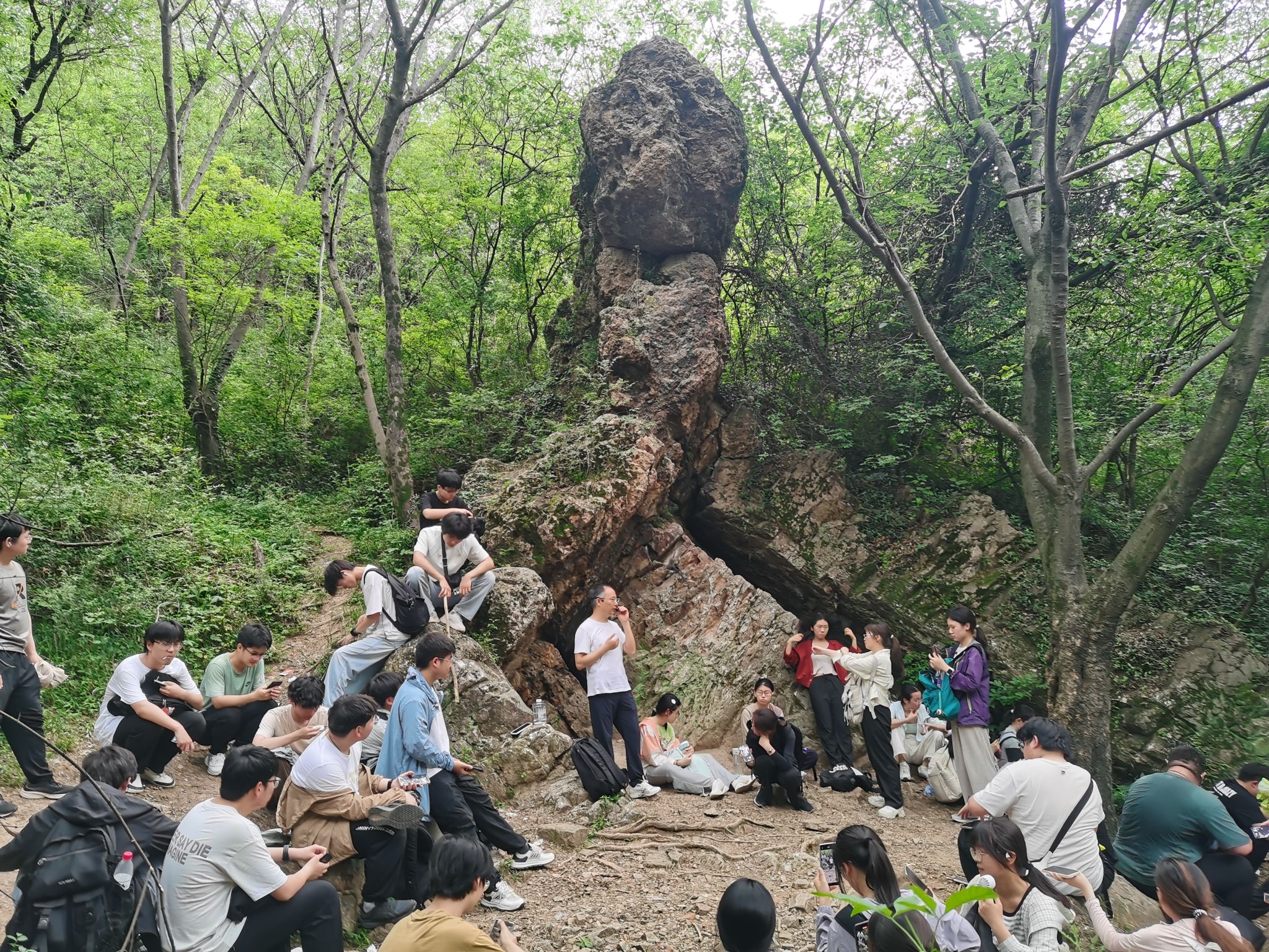 为深化地理科学专业学生的实践能力与学科素养,5月19日至23日,宿州学院环境与测绘工程学院组织2024级地理科学专业74名学生赴巢湖北山地区开展地质学基础野外实习。本次实习以“理论与实践融合,探索地质奥秘”为主题,围绕地质地貌演化、地层岩性、地质构造及水文水系等核心内容展开,并融入课程思政元素,取得显著教学成效。