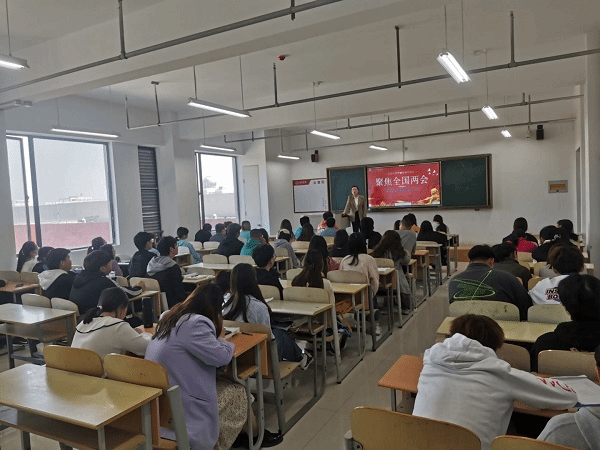 2021年3月15日环测学院学生党支部于实训楼501教室开展“聚焦全国两会”主题党课,此次党课由陈影主持,环测学院学生党支部全体党员与预备党员参加党课。