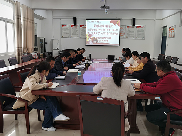 2021年11月17日下午,环测学院党委召开理论学习中心组(扩大)学习会议暨党史学习心得体会交流分享会,学院科级及以上干部、党支部书记、教研室主任和辅导员参加学习会,会议由学院党委副书记(临时负责)胡冰主持。