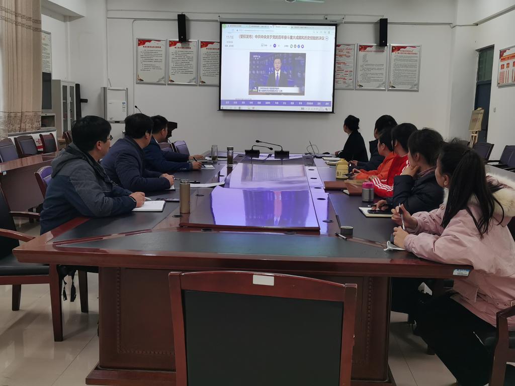 环测学院中心组成员集体收看学习了“中国共产党第十九届中央委员会第六次全体会议公报”。