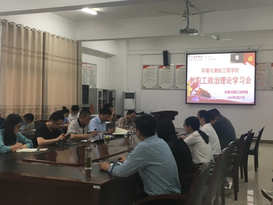 8月27日下午,环境与测绘工程学院党委在工A315会议室召开教职工政治理论学习会,学院全体教职工参加会议。学院党委副书记(临时负责)胡冰主持会议。