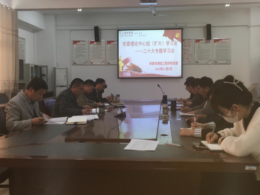 11月2日下午,环境与测绘工程学院党委在工A315会议室召开11月份党委理论学习中心组(扩大)学习会,学院党委中心组成员参加会议。学院党委副书记(临时负责)胡冰主持会议。