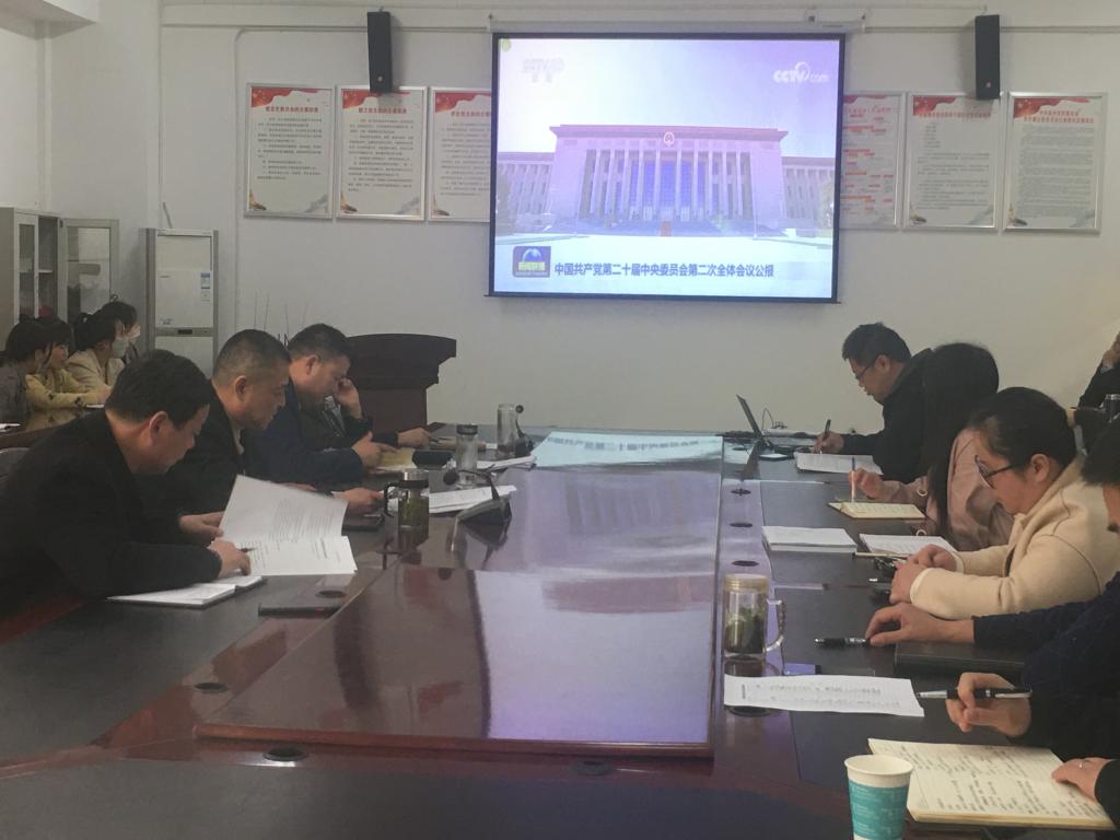 胡冰带领大家学习了中国共产党第二十届中央委员会第二次全体会议公报。指出十四届全国人大一次会议和全国政协十四届一次会议的召开,对进一步动员全党全国各族人民为全面建设社会主义现代化国家、全面推进中华民族伟大复兴而团结奋斗,具有重大意义。