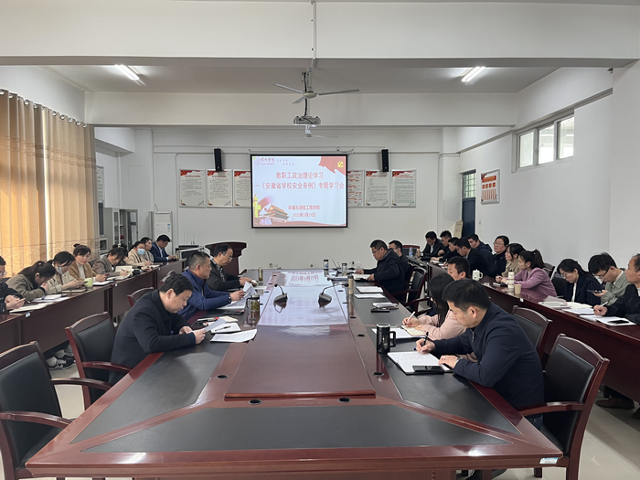 3月29日下午,环境与测绘工程学院党委在工A315会议室召开3月份全体教职工政治理论学习暨《安徽省学校安全条例》专题教育学习会,学院全体教职工参加会议。环测学院党委书记胡冰主持会议。