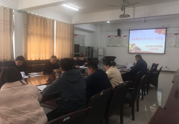 2023年4月6日下午,环境与测绘工程学院党委在工A315会议室召开党委理论学习中心组(扩大)学习会,学院党委中心组成员参加会议。学院党委书记胡冰主持会议。