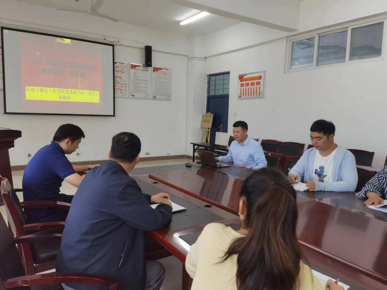 为了扎实推进学习贯彻习近平新时代中国特色社会主义思想主题教育,5月31日,环境与测绘工程学院党委副书记、院长张海洋在会议室为测绘与遥感教师党支部全体党员上了一堂题为“习近平总书记就建设教育强国的重要讲话读后感”的专题党课,全体支部党员老师参加了此次专题党课活动。