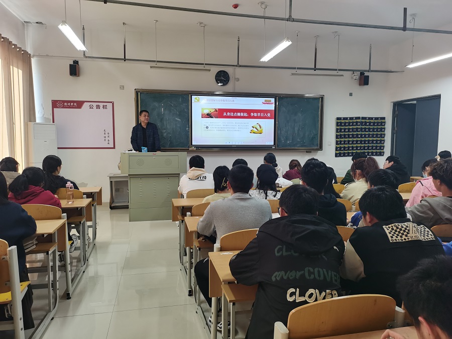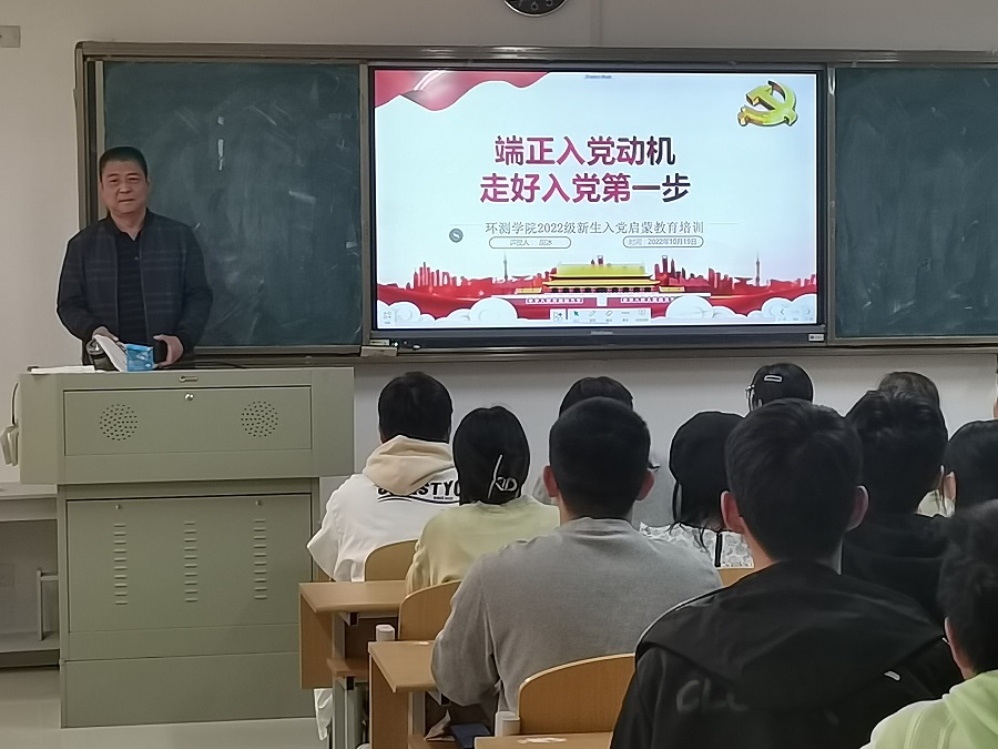 为深入推进新生入党启蒙教育,端正新生入党动机,10月19日下午,环测学院党委副书记(临时负责)胡冰在实训楼A503为22级测绘、22地科班新生开展“端正新生入党动机,走好入党第一步”专题培训。