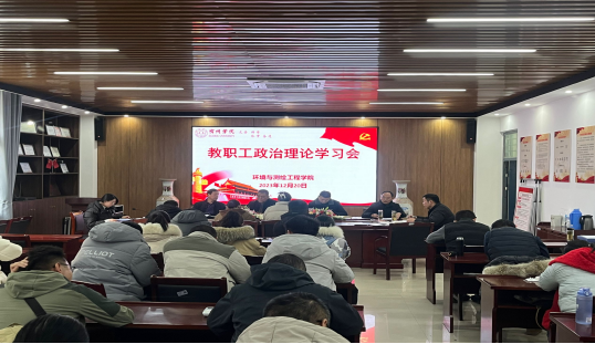 2023年12月20日下午,环境与测绘工程学院党委在工A315室召开教职工政治理论学习会,学院全体教职工参加会议,学院党委书记胡冰主持会议。