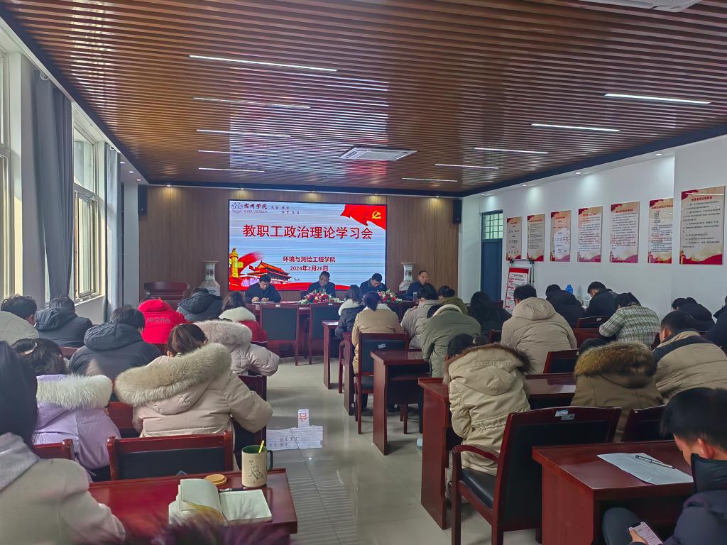2024年2月26日上午,环境与测绘工程学院在工A315会议室召开教职工政治理论学习会。会议由环测学院党委书记胡冰主持,全体教职工参加会议。