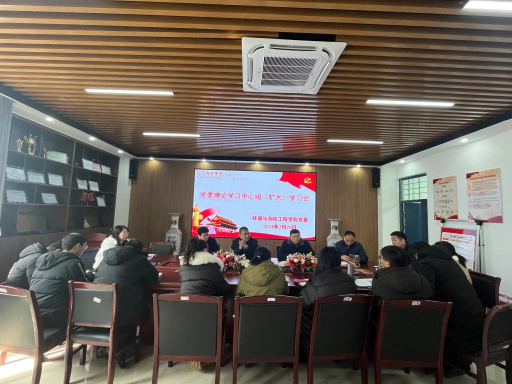 2024年2月26日上午,环境与测绘工程学院党委在工A楼315会议室召开党委理论学习中心组(扩大)学习会。会议由环测学院党委书记胡冰主持,党委委员、纪委委员、科级以上干部、支部书记、辅导员参加会议。