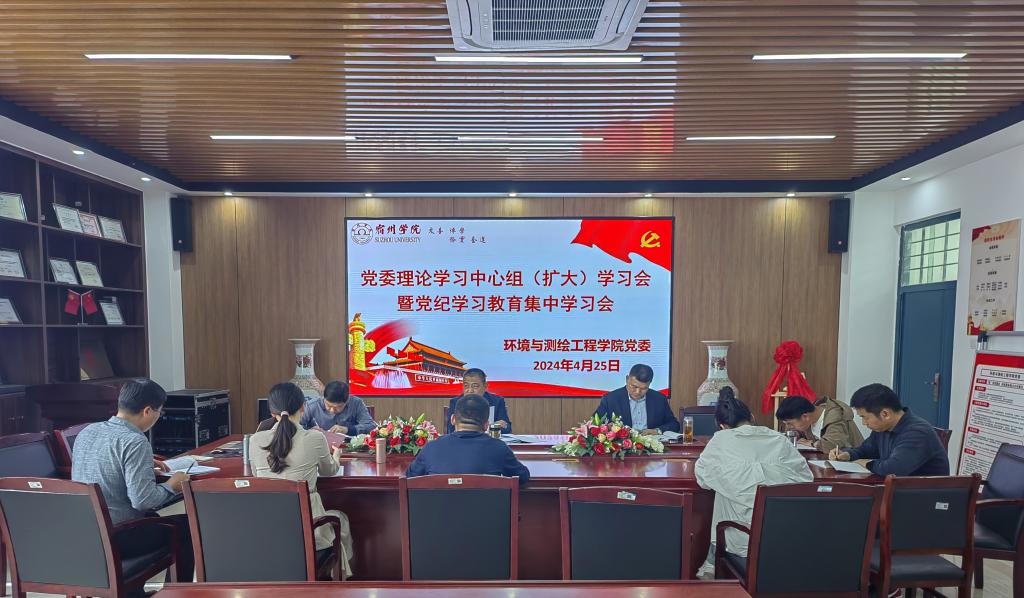 2024年4月25日下午,环测学院党委在工A楼315会议室召开党委理论学习中心组(扩大)学习会。会议由环测学院党委书记胡冰主持,学院中心组成员、科级以上干部、支部书记参加会议。