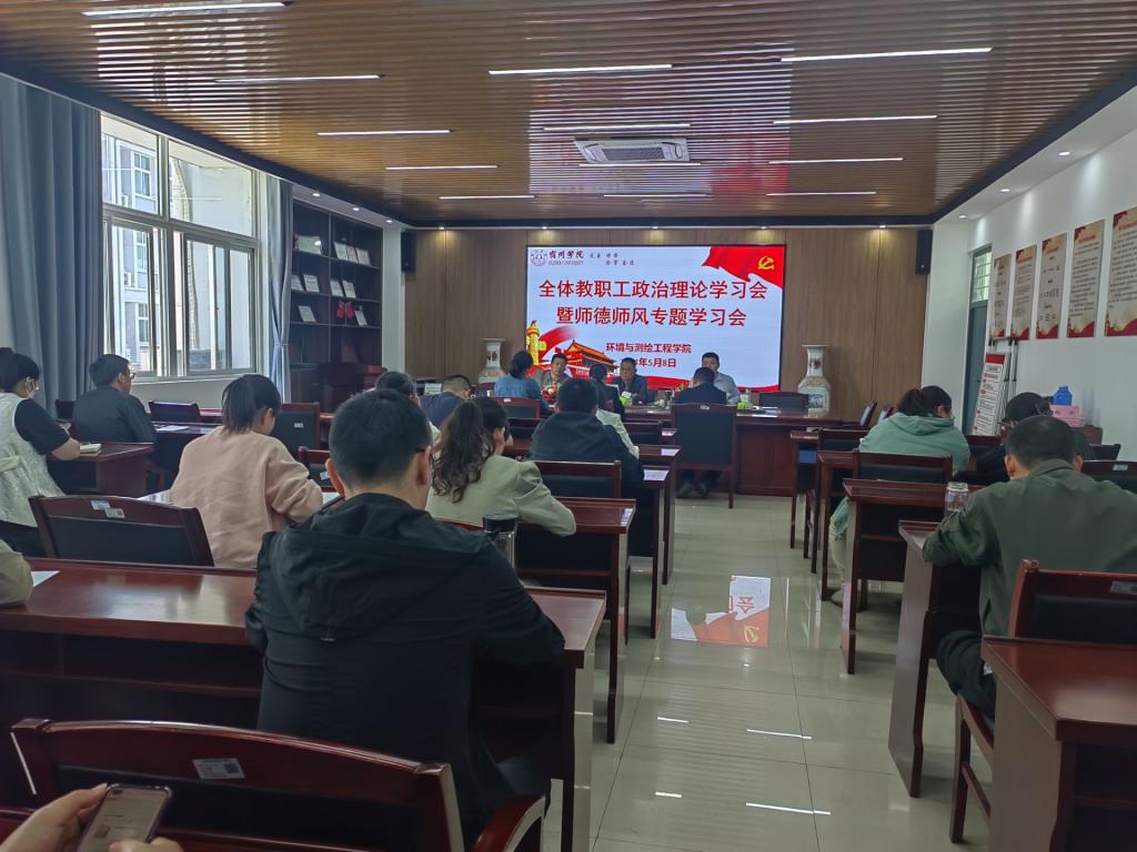 为进一步规范学院教师职业行为,落实立德树人根本任务。2024年5月8日下午,环境与测绘工程学院在工A315会议室召开教职工政治理论学习会暨师德师风专题学习会。会议由环测学院党委书记胡冰主持,全体教职工参加会议。